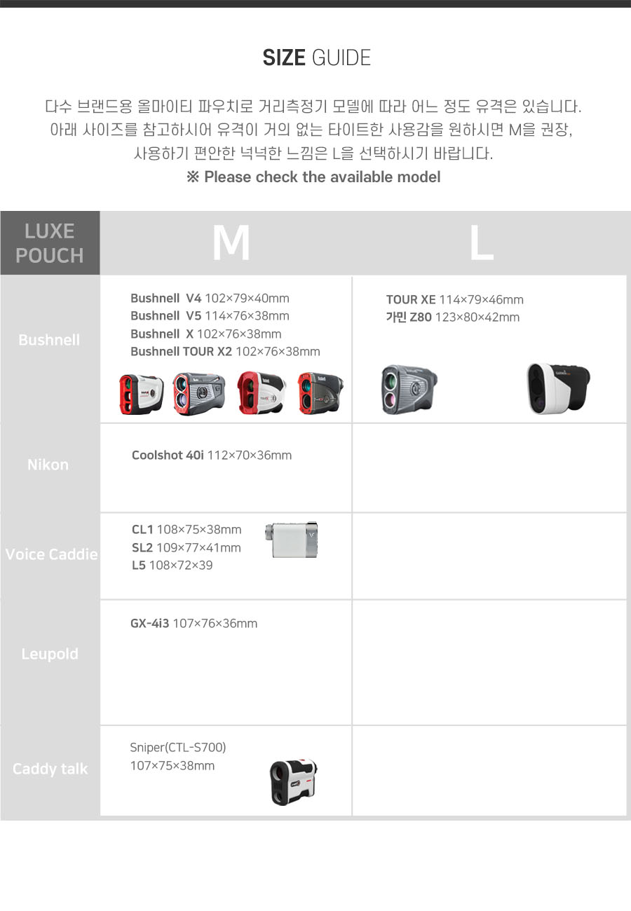 :: 사용중인 거리측정기가 S 사이즈라면, 이디스 레인지 파인더 파우치를 추천드립니다. 럭스 시리즈에는 S가 출시되지 않았습니다 ::